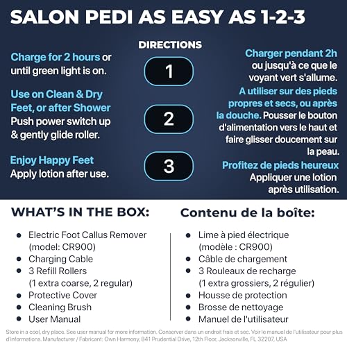 Electric Callus Remover: Rechargeable Electronic Foot File CR900 by Own Harmony(Tested Most Powerful) Best Pedicure Tools w 3 Rollers Professional Pedi Feet Care Sander for Cracked Heels and Hard Skin