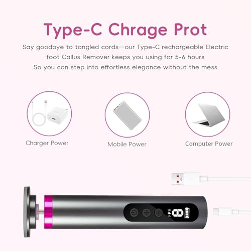 - ¡¼2000mAh Battery & Type-C Charging¡½£º2000mAh rechargeable battery delivers 5 hours of cordless use per full charge.Type-C port supports rapid charging for uninterrupted foot care.Outperforms wired models with tangle-free design, perfect for travel or home use.