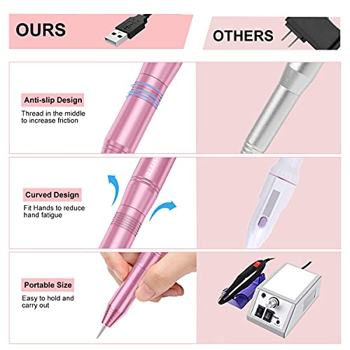 Electric Nail Drill,USB Electric Nail Drill Machine for Acrylic Nail Kit,Portable Electric Nail File Polishing Tool Manicure Pedicure Kit Efile Nail Supplies for Home Salon,Pink