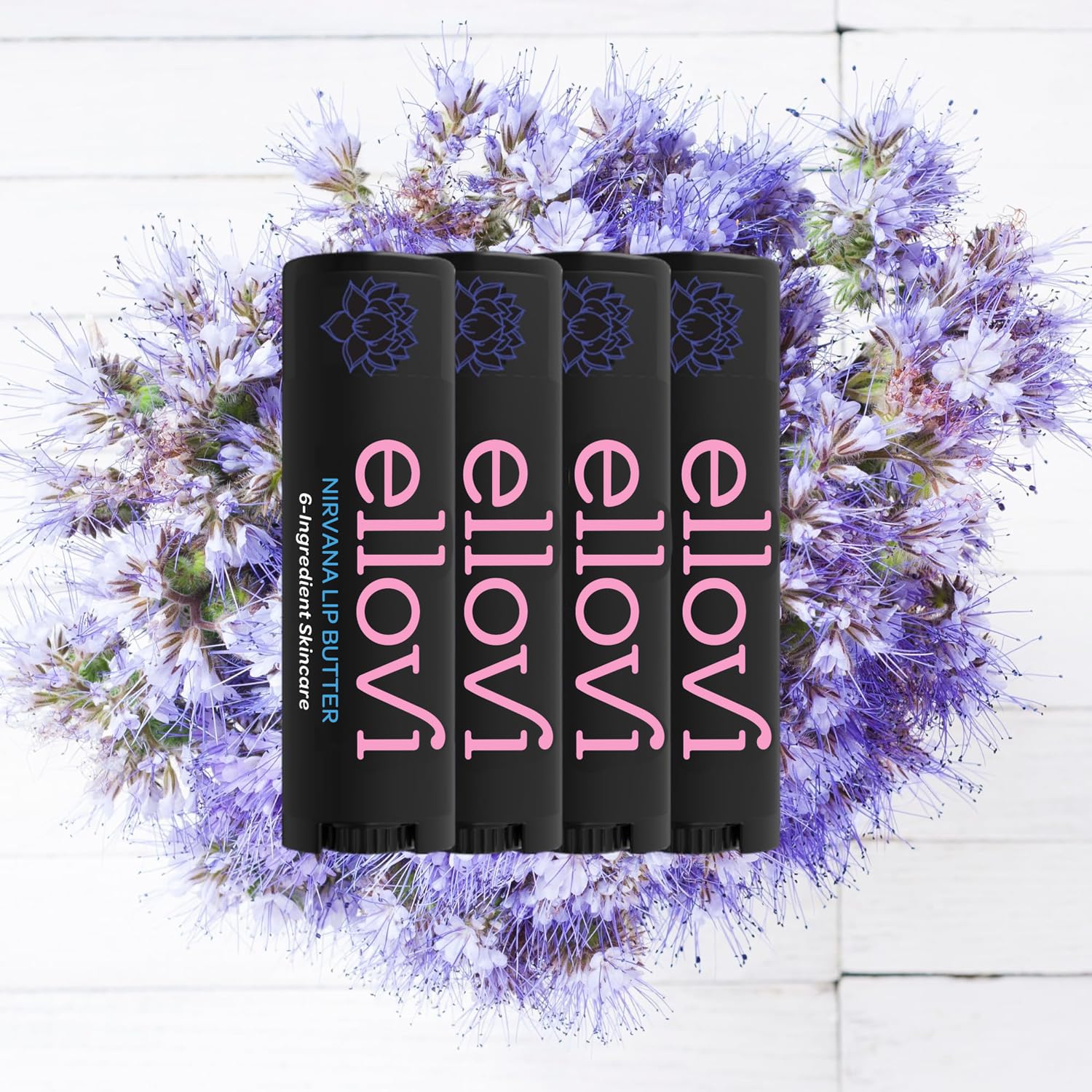 Ellovi Natural Lip Butter Lip Balm - Nirvana - Pure Enough to Eat - Made With Just 6 Vegan Ingredients - 100% Natural & Organic Moisturizing Lip Care for All Day Hydration (4-Pack)