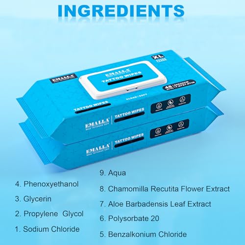 Emalla Tattoo Wipes, Extra Large 48pcs All in One Premium Tattoo Care Wipes to Clean Skin and Tattoo Aftercare Tattoo Supplies