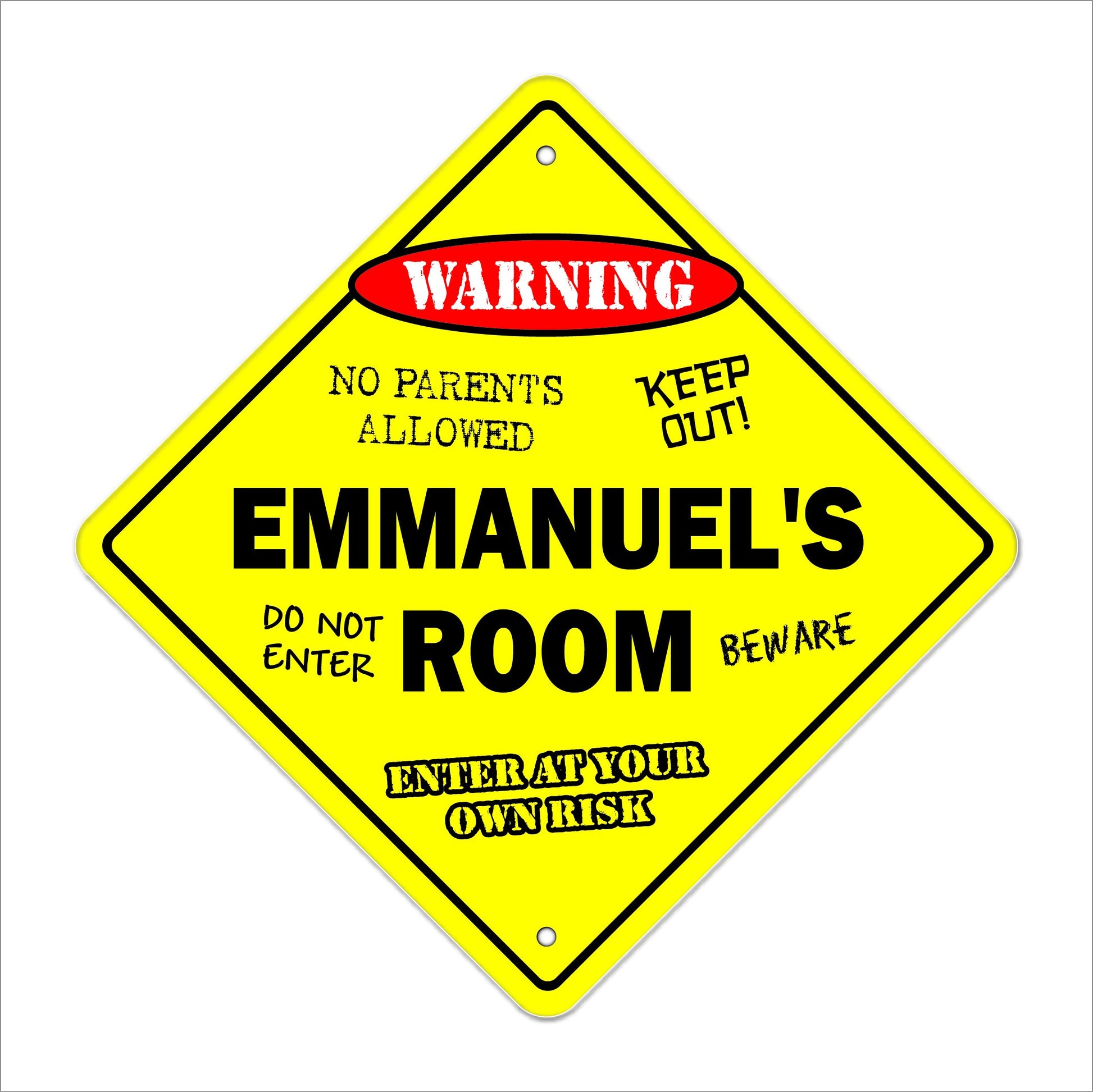 Details: Everybody loves personalized gifts and this is perfect for those kids in your life Made in the USA these signs are sturdy weatherproof plastic 12 tall and 12 wide diamond shaped with rounded corners and 2 cut mounting holes. Made To last Made from a special plastic designed to hold up to a beating, This sign can bend with out breaking and will never chip or crack, the colorful lettering will last a lifetime indoors and up to 4 years in the sun for outdoor use. Safe for A Childs Room Our signs have rounded edges and our made of a very strong but lightweight plastic so you can hang it in your child's room without the worry of it falling and hurting your child or cutting them with sharp edges. Product Details: Emmanuel's Room -Cut Mounting Holes Indoor and Outdoor Use Rust and Fade Resistant One-Sided Scratch Resistant treated Ink Dimension: 12 Tall x 12 Wide Made in the USA Outdoor Durable Plastic Click Add to Cart to get your Emmanuel's Room sign today and enjoy a good laugh each time you pass by!