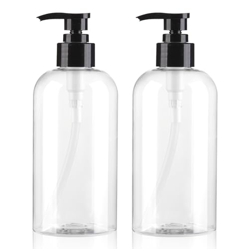 Empty Pump Bottles Dispenser 12.85oz/380ml, Refillable Clear BPA-Free Plastic Pump Bottle for Shampoo, Lotion, Soap and Massage Oil, 2 Pack