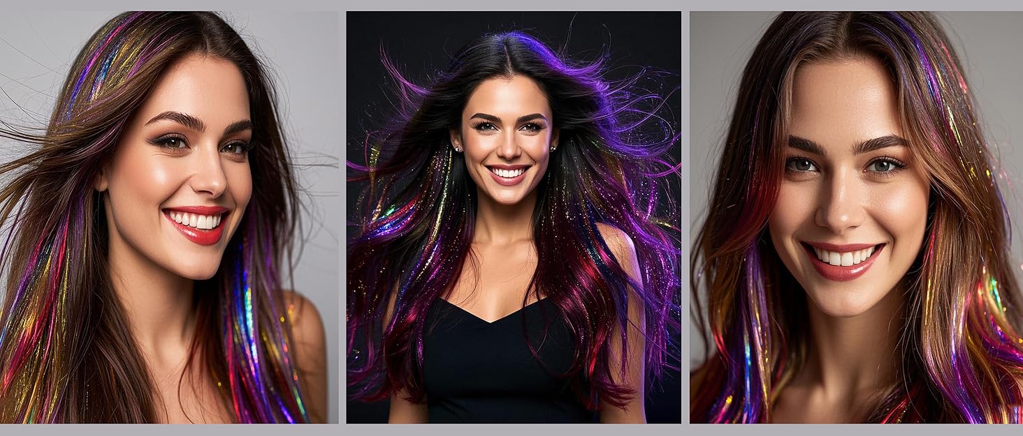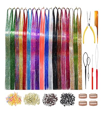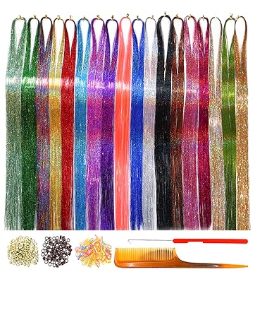 Fairy Hair Extensions for Kids - Tinsel Hair Strands, 15 Colors, 47 Inches Sparkle