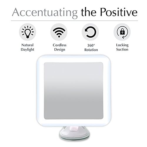 Fancii 10X Magnifying Lighted Makeup Mirror - Daylight LED Vanity Mirror - Compact, Cordless, Locking Suction, 6.5" Wide, 360 Rotation, Portable Illuminated Bathroom Mirror (Square)