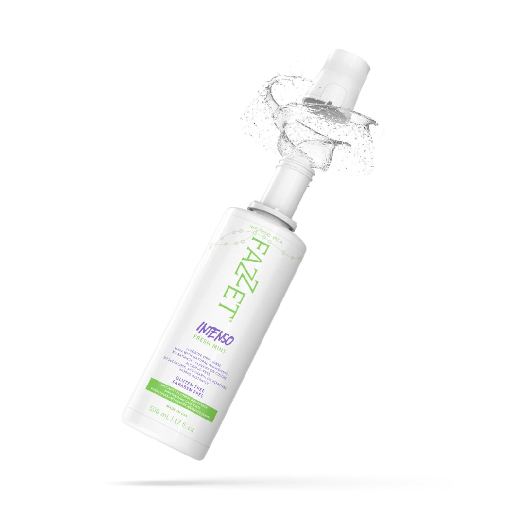 FAZZET Intenso Fluoride Oral Rinse – Soothe Tonsils, Combat Bad Breath – Alcohol, Gluten, and Paraben Free Mouthwash – Fresh Mint Flavor