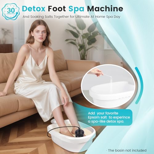 - Portable Ionic Foot Detox Machine - Compact and space-saving at just 4.33 x 2.36". Ideal for both home use and travel. The upgraded version foot spa detox machine continues to function even when more salts are added. Just need water and salts, this foot bath machine provides a relaxing, spa-like experience right at home.