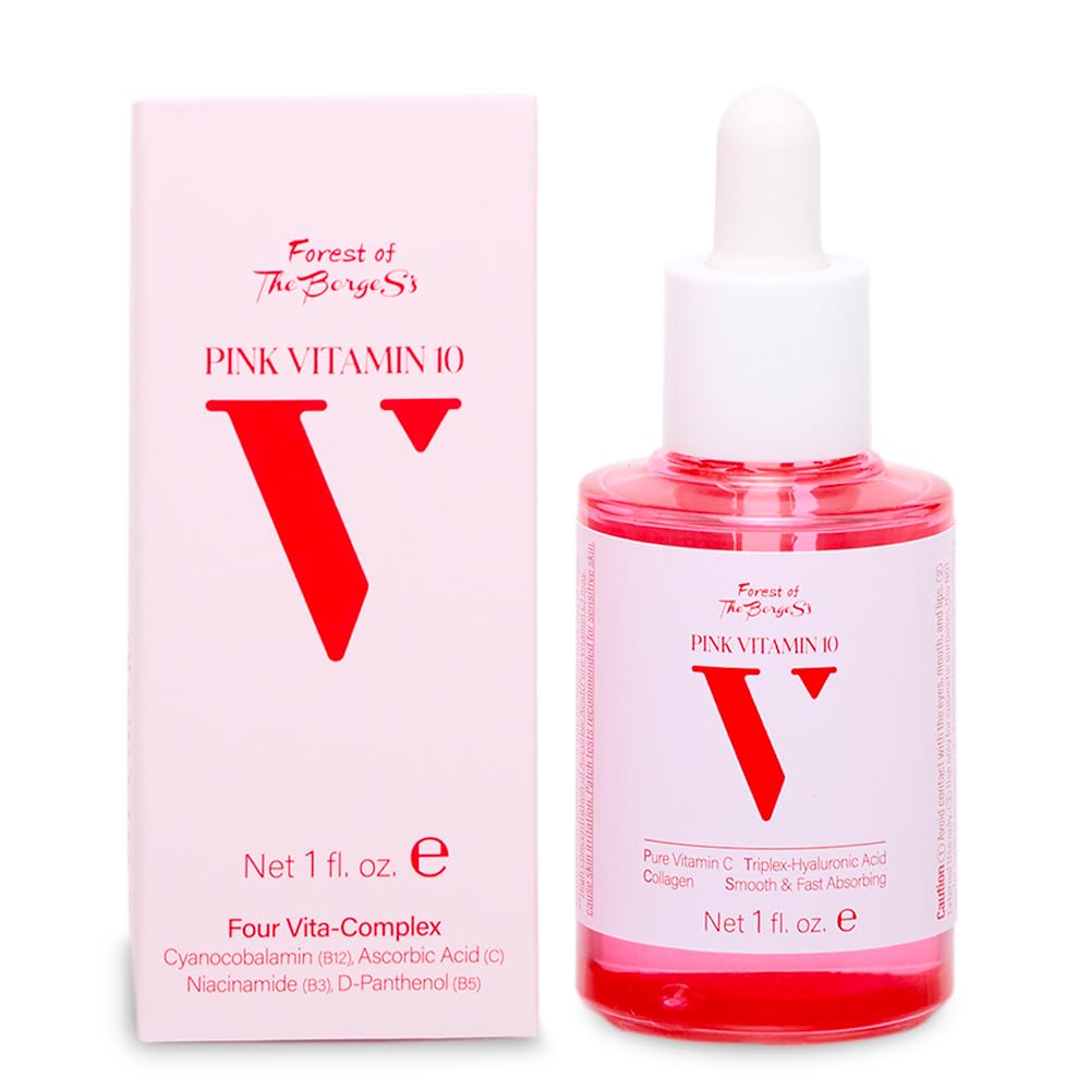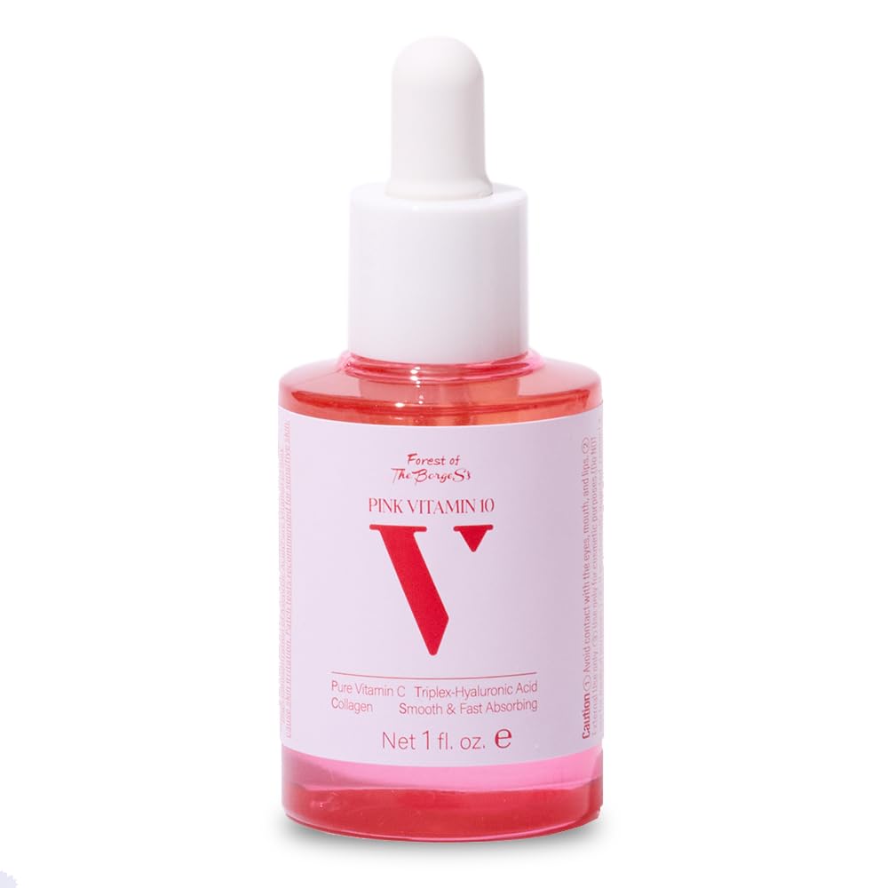 Forest of the Borges's Pink V10 Vitamin Serum 1.0 fl oz – 10% Pure Vitamin C with Niacinamide, Panthenol, Collagen, EGF & Hyaluronic Acid – Lightweight Korean Facial Serum for Daily Use.