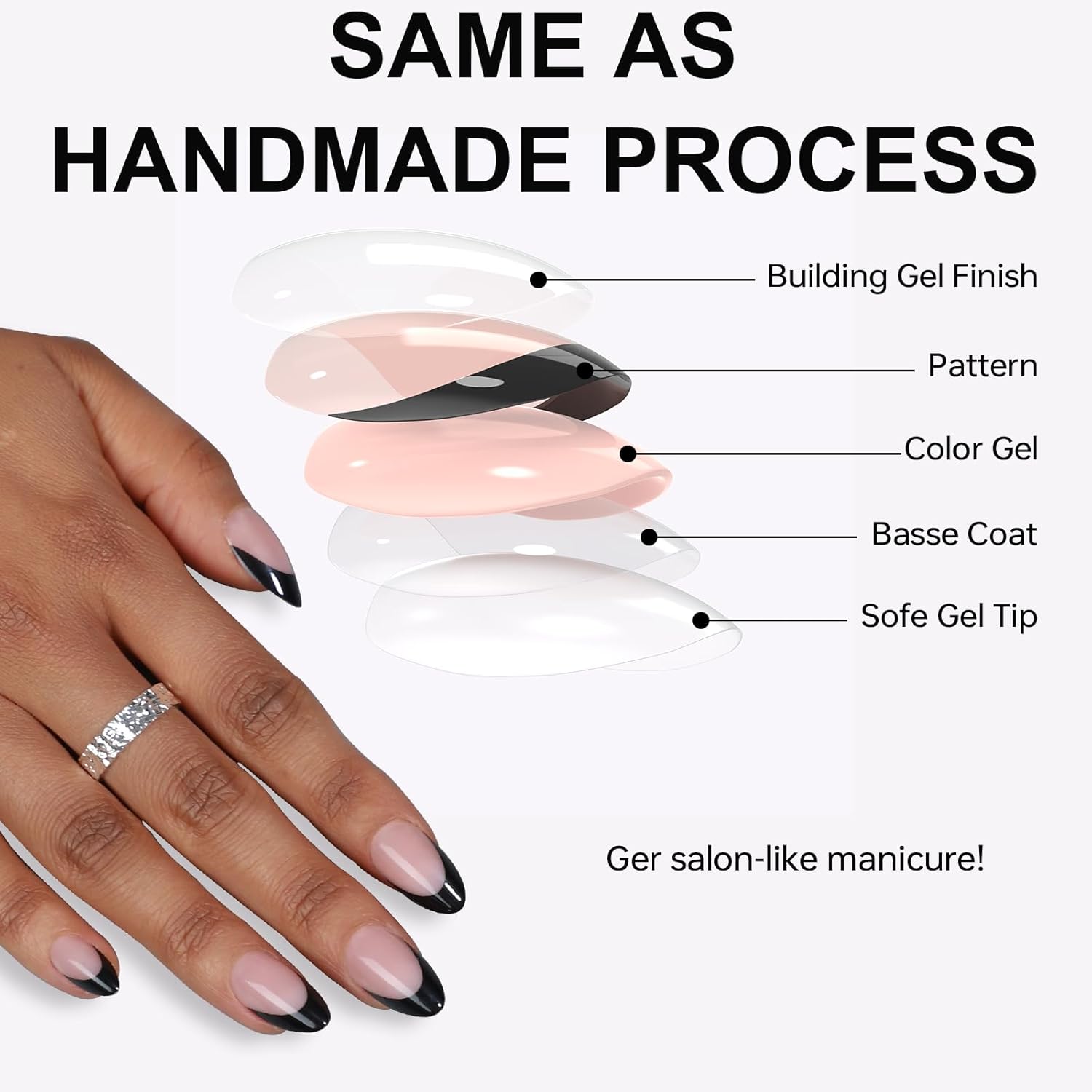 - Salon-like Results: Short almond nails press ons (uñas postizas)are meticulously crafted using a gel-based process, delivering salon-like outcomes.Say goodbye to harsh smelling nail polish and hello to long-lasting shine