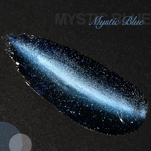 GAOY 16ml Deep Blue Cat Eye Gel Nail Polish, Glitter Holographic Nail Polish with Magnet, Reflective Translucent UV Gel, 2929 Mystic Blue
