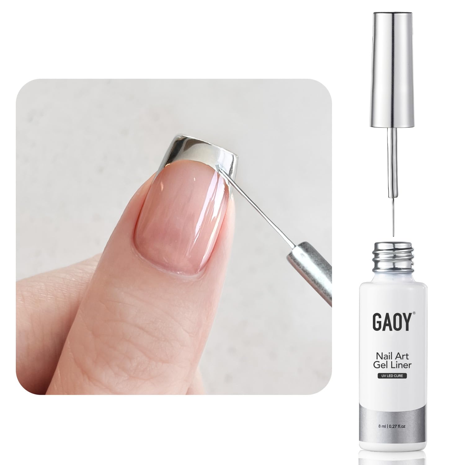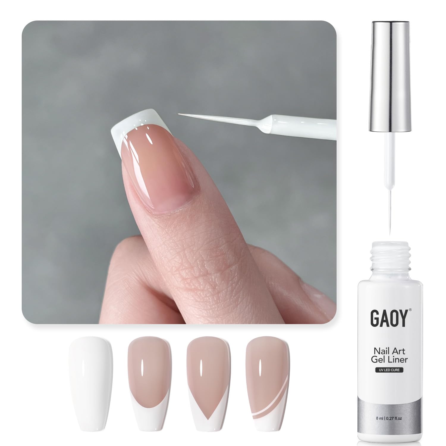 GAOY White Swirl Gel Nail Polish Art Liner, 8ml Classic Color Nail Paint Design with Thin Brush, UV Light Cure for DIY French Manicure at Home