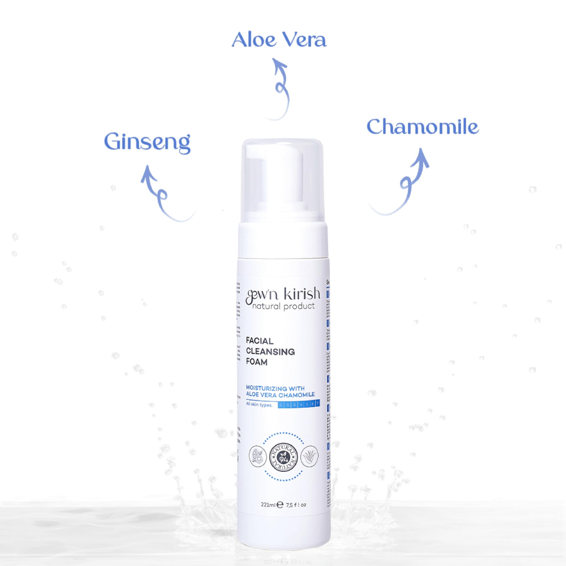 Gew’n Kirish Facial Cleansing Foam – Gentle Daily Cleanser for All Skin Types, With Aloe Vera, Chamomile, Niacinamide, Moisture-Balancing Soft Lather, 7.5 fl oz