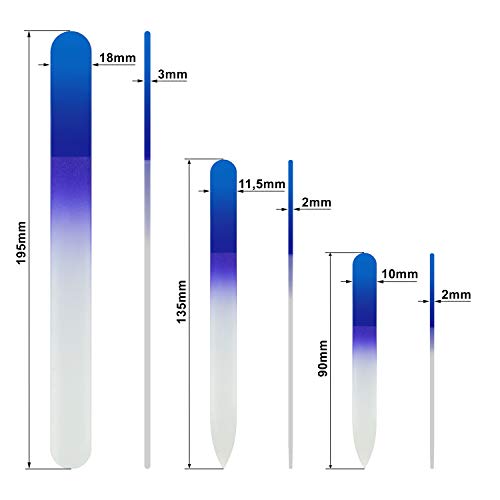 Glass Nail File - Mont Bleu Premium Set of 3 Crystal Nail Files in Pouch - Handmade Gifts - Best Glass Nail Files for Natural Nails - Washable Double Sided Nail File - Etched Nail Files
