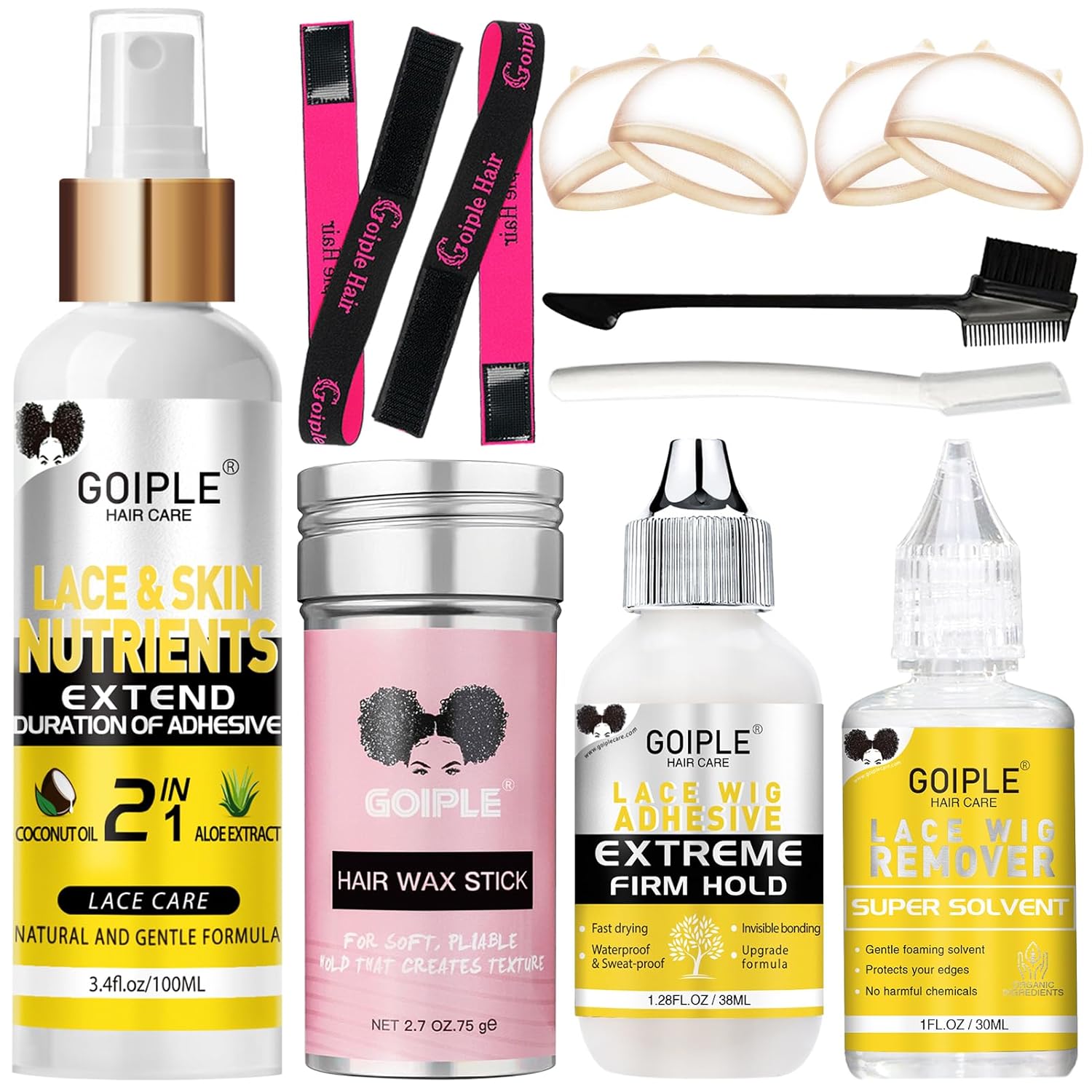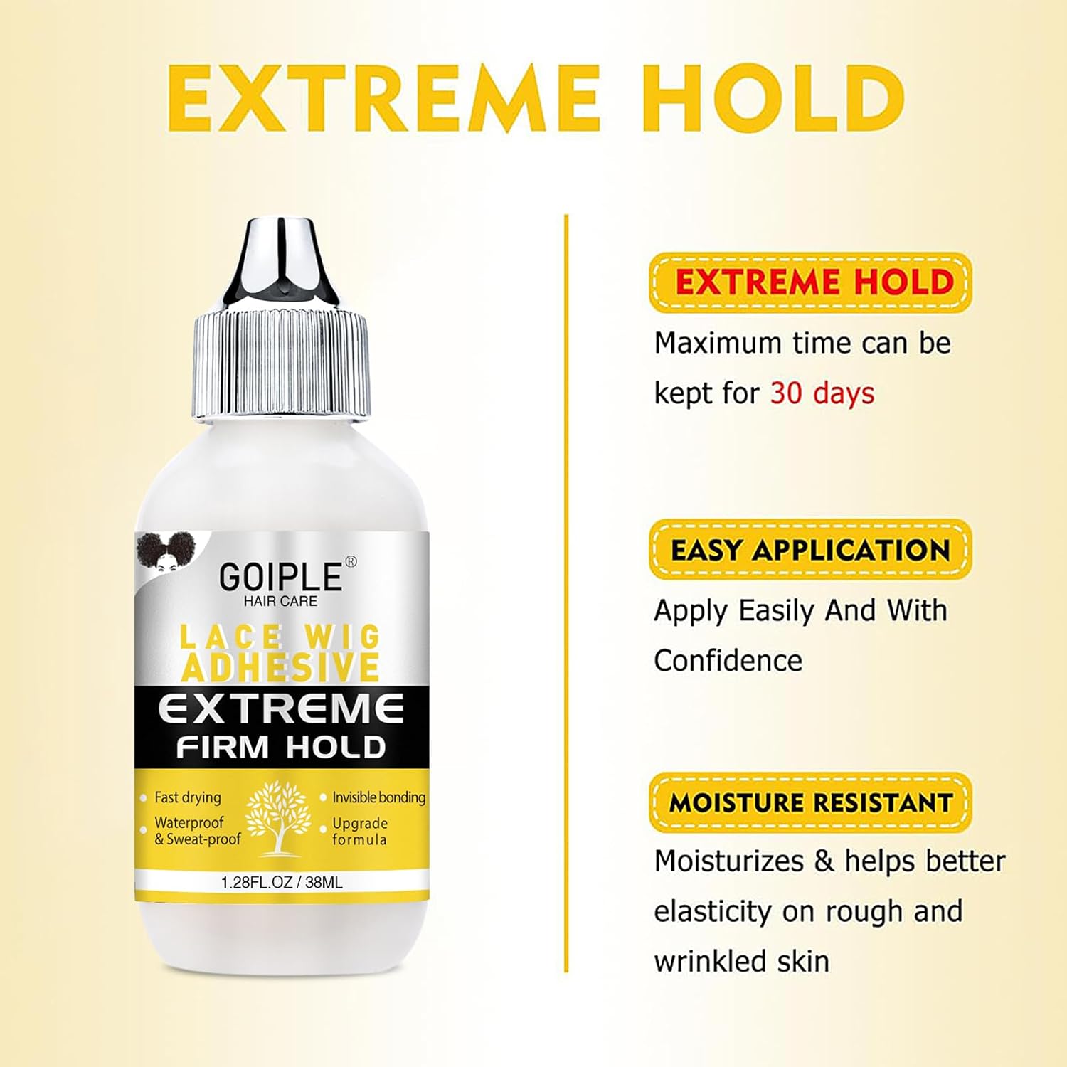 Goiple Wig Glue for Lace Front Wigs, Waterproof Lace Front Wig Glue for Wigs, Strong Hold Transparent Lace Adhesive for Hair Replacement Invisible Hair Bonding Wig Adhesive(1.28 fl oz)