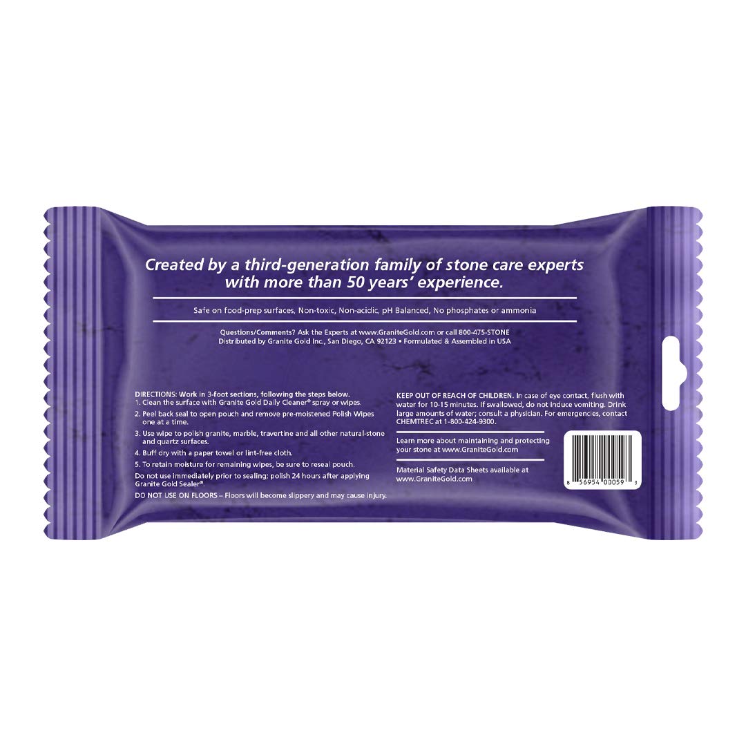 Granite Gold Polish Wipes Streak-Free Shine for Granite, Quartz, Marble, Travertine, Natural Stone Countertops, 18 Count, 1-Pack