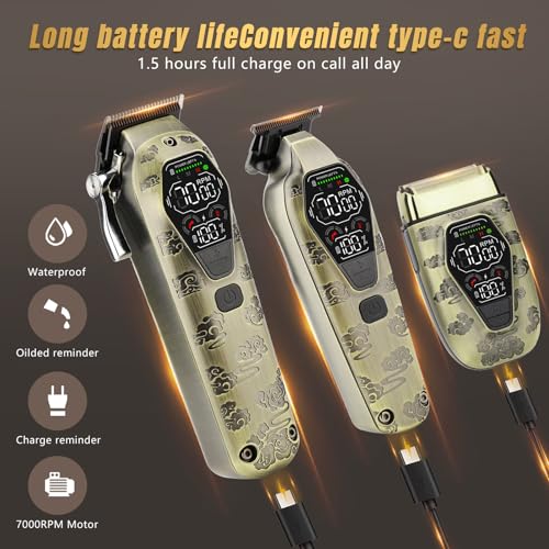 - LCD Display and Large Capacity Battery: This cordless hair clippers for barbers shows basic functions including battery indicator, oil drip reminder, temperature reminder, and motor speed; Easily monitors the remaining power; Operates for up to 120 minutes with a single charge, removing the necessity for frequent recharging; Charges via USB-C and supports both wired and wireless use, allowing shaving anytime and anywhere