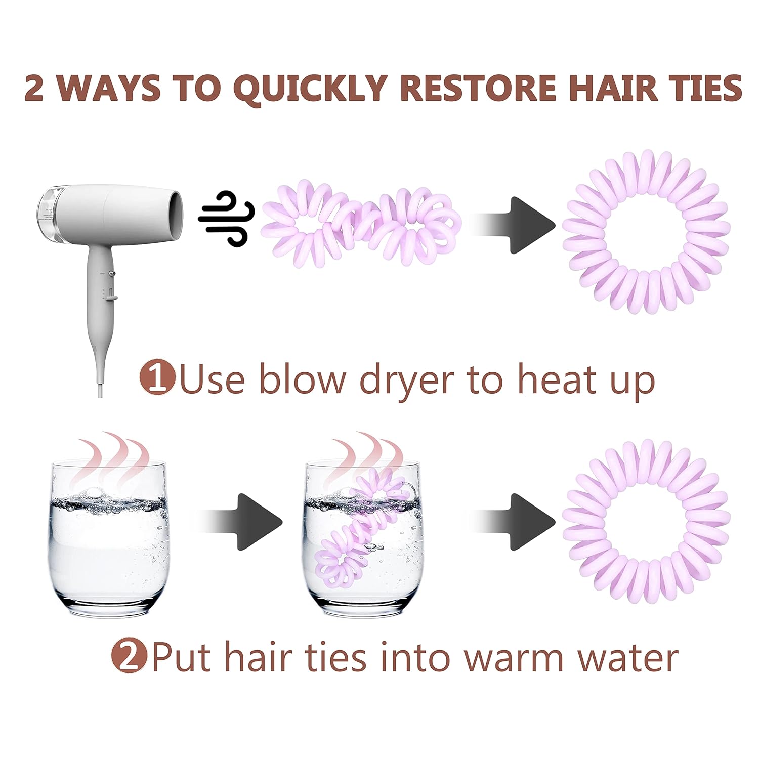 - High Quality Material: This hair elastics for women made of waterproof skin-friendly TPU, which is soft, durable and flexible. These spiral hair ties for thick hair & hair coil ties not only fixed the hair firmly also not hurt for your hair.