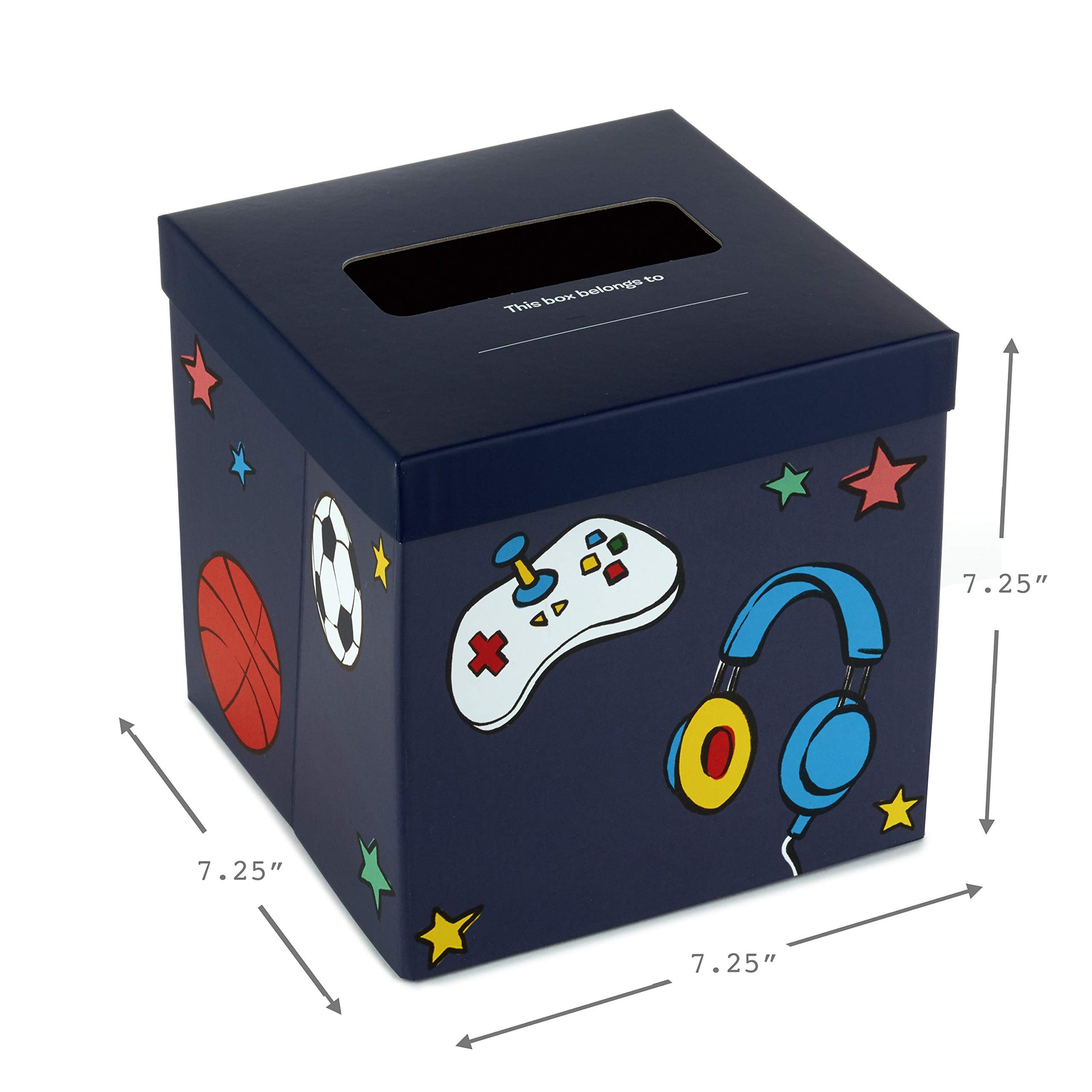 Details: Boys will be thrilled to hand out these super fun Valentine's Day cards to all their friends at their classroom exchange. Moms and dads will be thrilled with the convenience of the easy pop-up collection box. With a cool dark blue design featuring pizza, skateboards, a football, soccer ball, basketball, baseball, and video game controller, this Valentine's kit is sure to be a hit with the elementary or middle school set. The Hallmark brand is widely recognized as the very best for greeting cards, gift wrap, and more. For more than 100 years, Hallmark has been helping its customers make everyday moments more beautiful and celebrations more joyful.