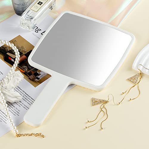 Hand Mirror, Handheld Mirror with Handle for Makeup, Portable Cute Hand held Mirror for Shaving, Travel Men & Women(White)