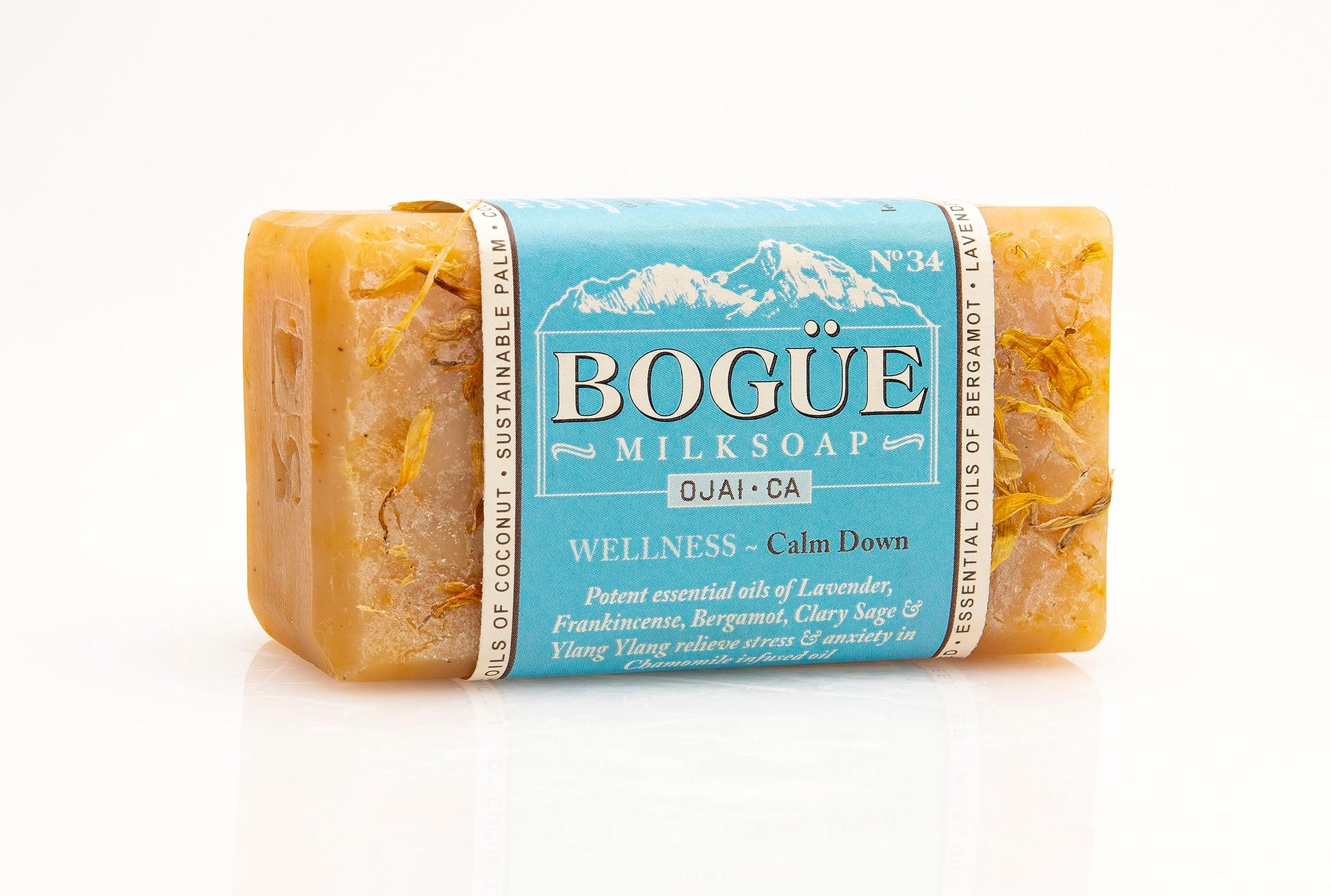 Handmade Goat Milk Soap set of 2 bars- BOGUE No.34 WELLNESS Calm Down blend with essential oils of Lavender, Frankincense, Clary Sage & Calming Chamomile to help reduce stress