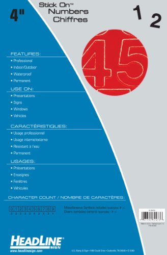 Details: These vinyl peel-and-stick numbers from Headline Sign are great for use on presentation poster boards, signs, windows or vehicles. They feature a permanent adhesive that is waterproof and works great for both indoor and outdoor applications. Create your own custom message with Headline Sign's vinyl characters!