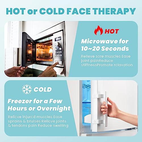 - Cold & Hot Compress: Gel face mask cold pack fills with medical grade gel with good temperature storage and high fluidity, it can be used as a hot or cold compress. For better results, when used cold, the best freezing time in the refrigerator is 2-6 hours. Or heat in microwave oven for 10 seconds to achieve the heat therapy effect.