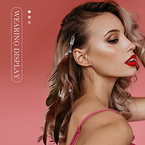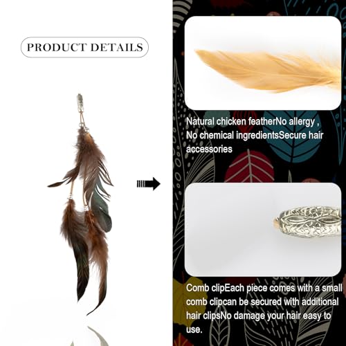 ICYANG Women Feather Hair Clips, 6 Pieces Handmade Boho Hippie Hair Extensions with Clip DIY Viking Hair Accessories Headdress