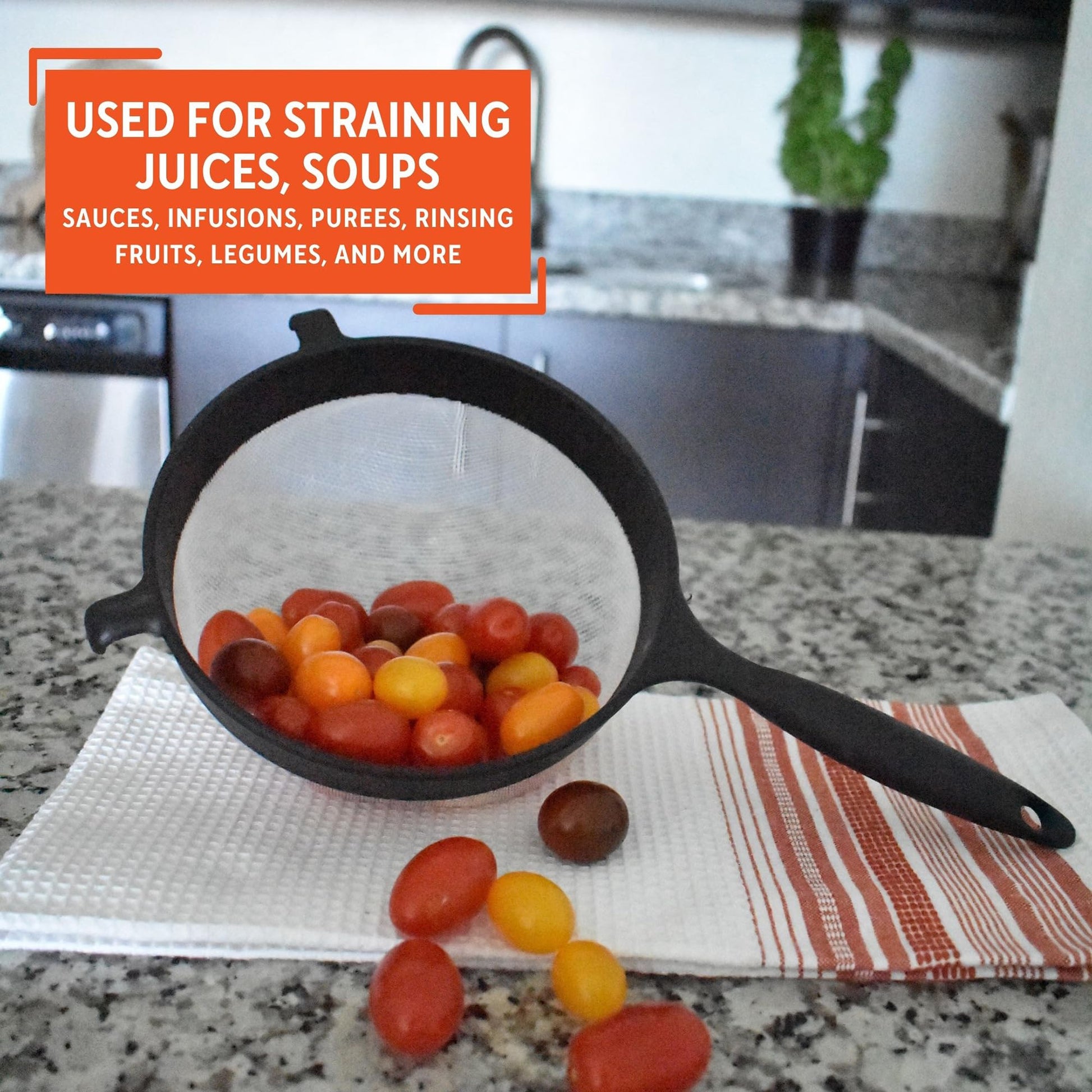 - VERSATILE USE: Used for straining a variety of liquids like juices and soups, rinsing fruits and legumes, as well as for making infusions and purees without mess