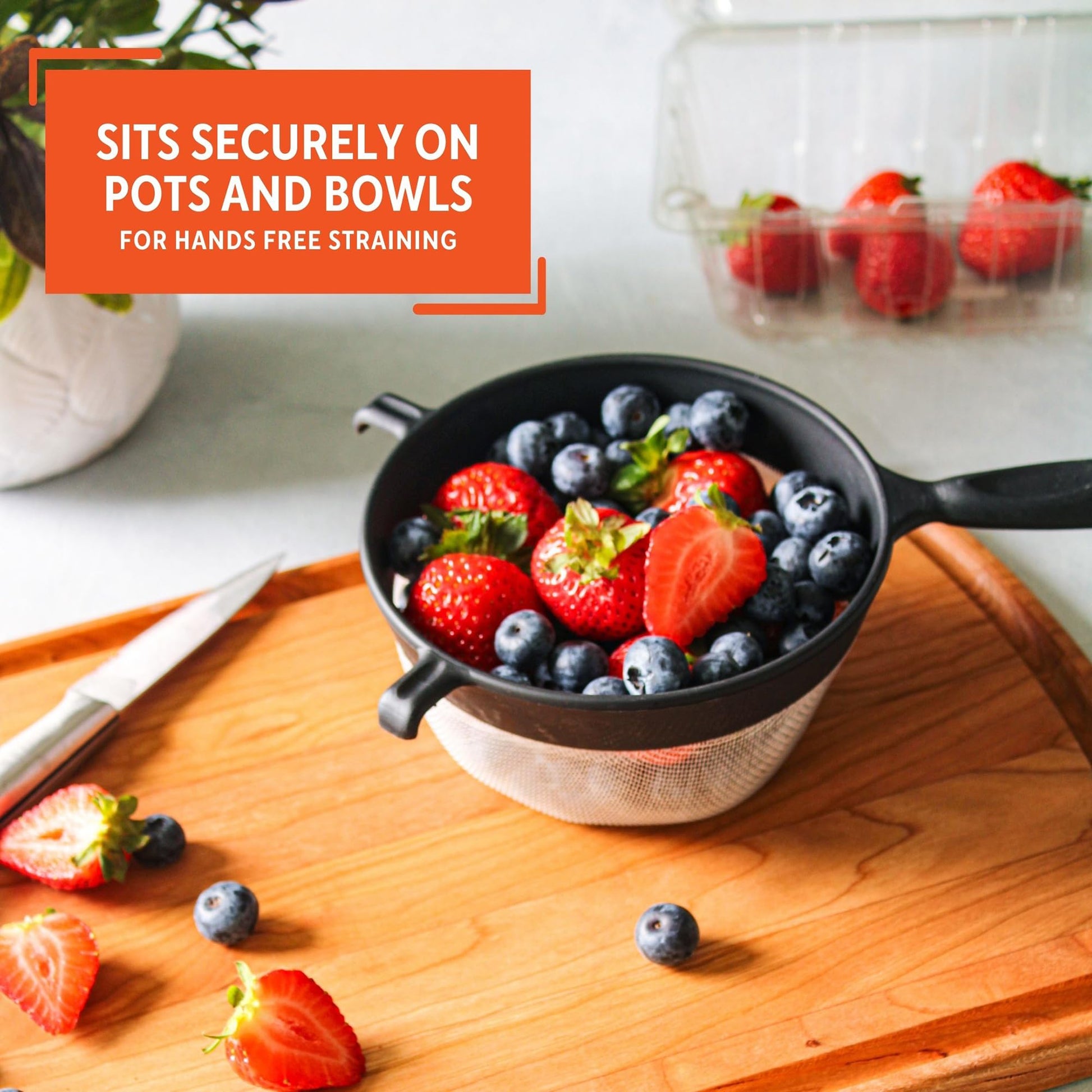 - PERFECT SIZE: Measurements of 6” make this strainer perfect for smaller pots and bowls, ideal for hands-free straining while cooking, providing convenience and efficiency in your kitchen