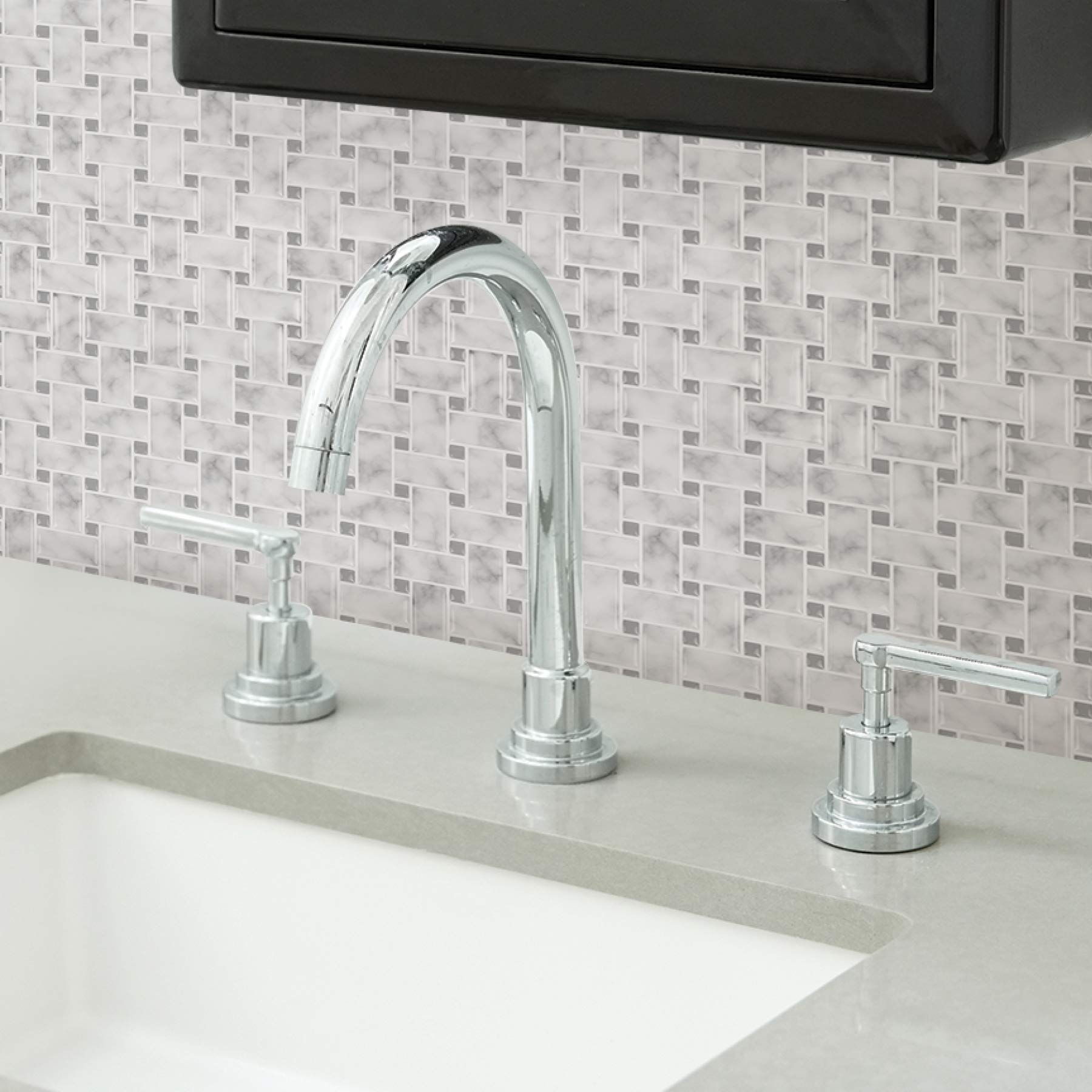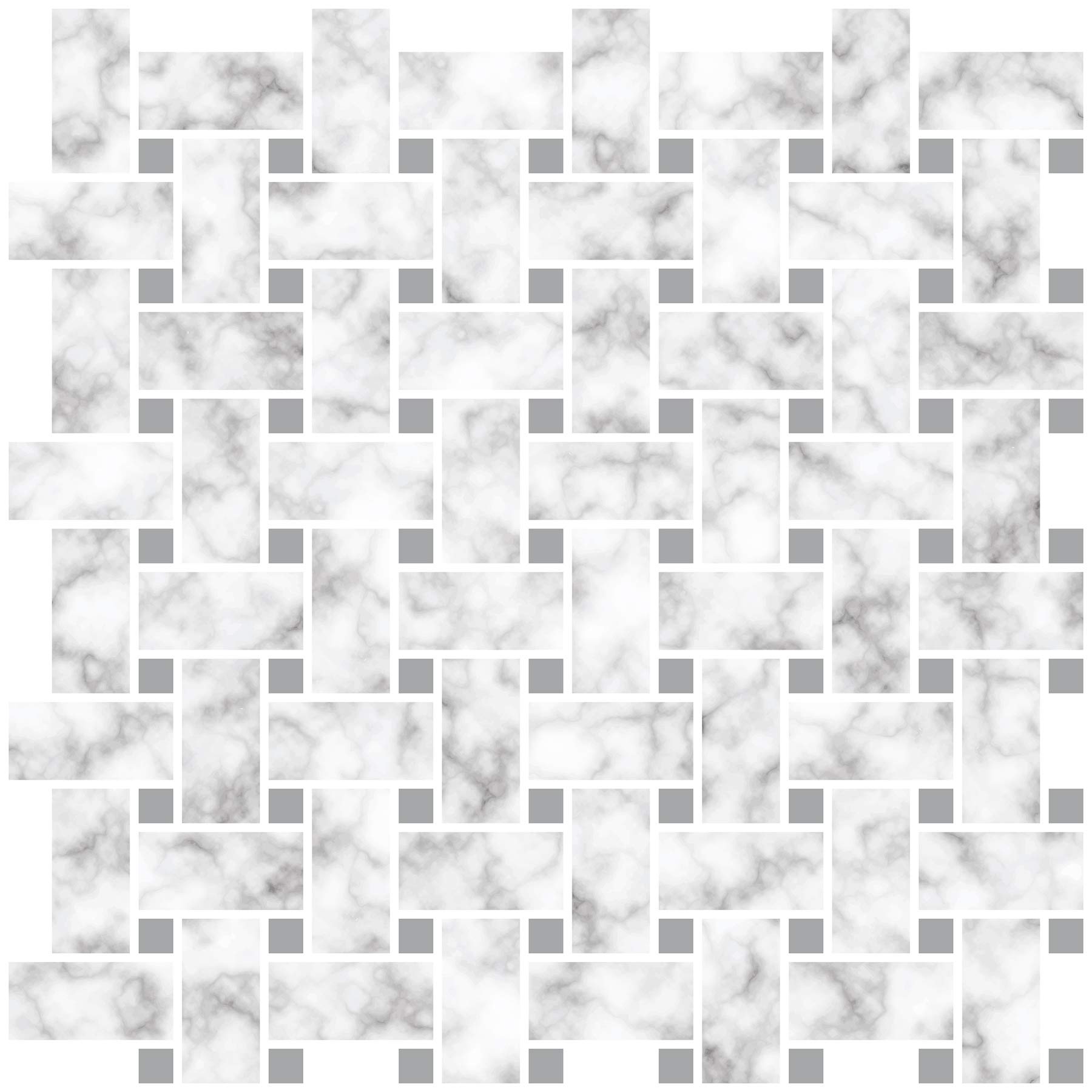 Details: Get the look of white marble that you've always wanted with the ease of peel and stick! Arranged in a beautiful basket weave design, these tile panels have a fresh and clean look.