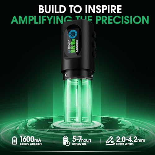 - High-Power Coreless Motor: Powered by a 12,000 RPM coreless motor, this tattoo machine ensures strong performance with low vibration and noise, making it perfect for professional use or in a tattoo complete kit.