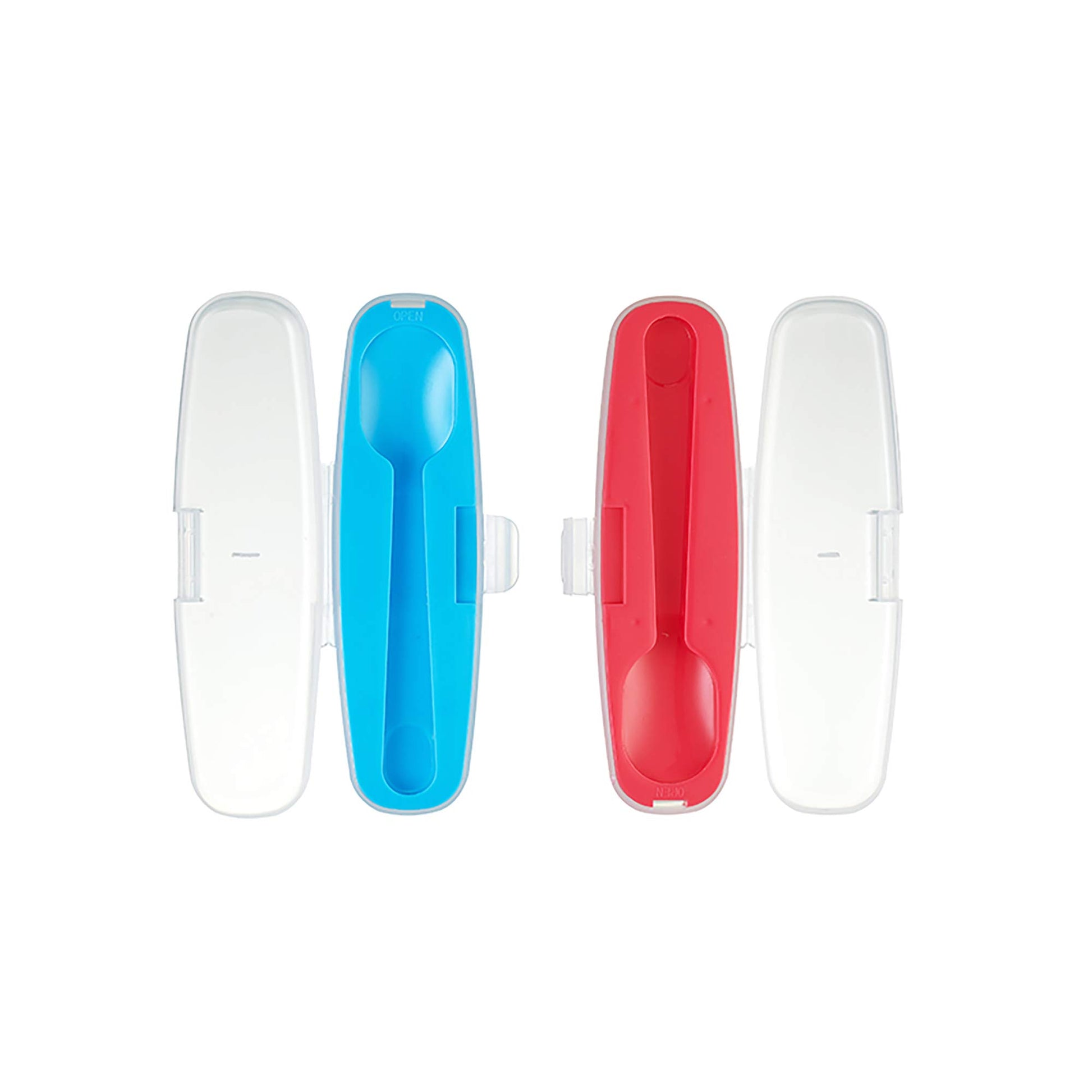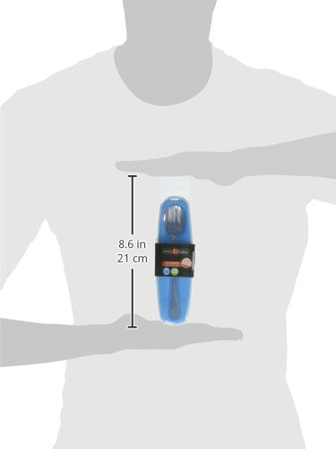 Innobaby Din Din Smart Stainless Steel Spoon and Fork with Carrying Case. Utensil Set for Kids and Toddlers. BPA Free. Blue.