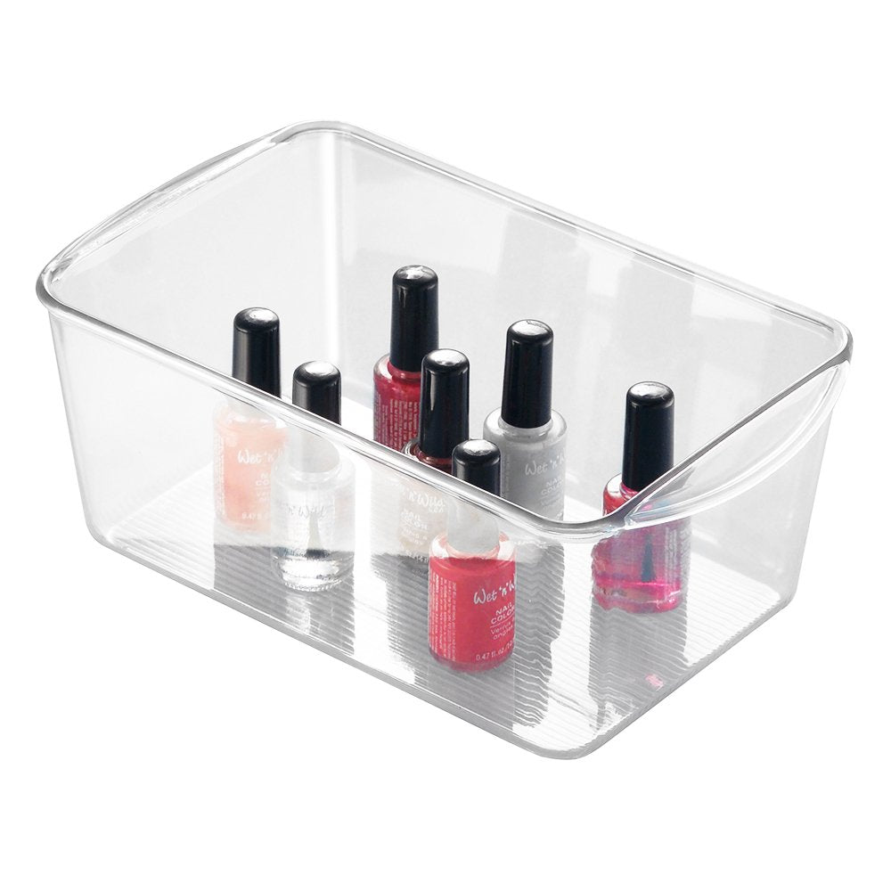 Details: Enjoy effortless organization anywhere you need with our iDesign Recycled Plastic Makeup Organizer Bin with Handles. The see-through design and open-top concept allow you to quickly inventory everything inside from lotions and soaps to skincare, cosmetics, and other personal care items while ensuring whatever you need is always within arm’s reach. Sleek handles provide an easy grip when sliding off shelves or moving the bin from the countertop to the vanity or wherever you need. . Designed with versatility in mind, this plastic storage bin also works in offices, closets, bedrooms, kitchens, pantries, or anywhere else throughout the home that needs organizing. With iDesign, you can live simply every day.