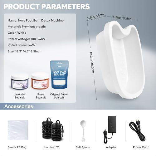 - 3 Premium Sea Salts for Enhanced Benefits: Each ionic foot bath includes 3 specially formulated sea salts (original /lavender/rose) to customize your spa experience. These salts work synergistically with the ion technology to maximize detox effects, relieve stress, and nourish your skin for a truly luxurious experience.