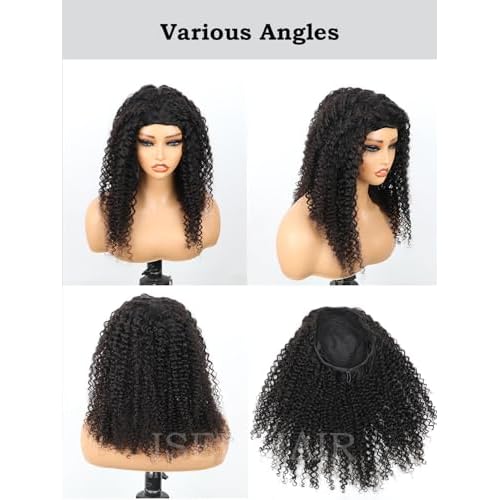 ISEE Half Wig Human Hair Glueless Wigs Upgrade 3 IN 1 Half Wig With Drawstring Seamless Clip Ins Flip Over Kinky Curly Human Hair No Glue No Lace For Women 180% Density 18 Inch