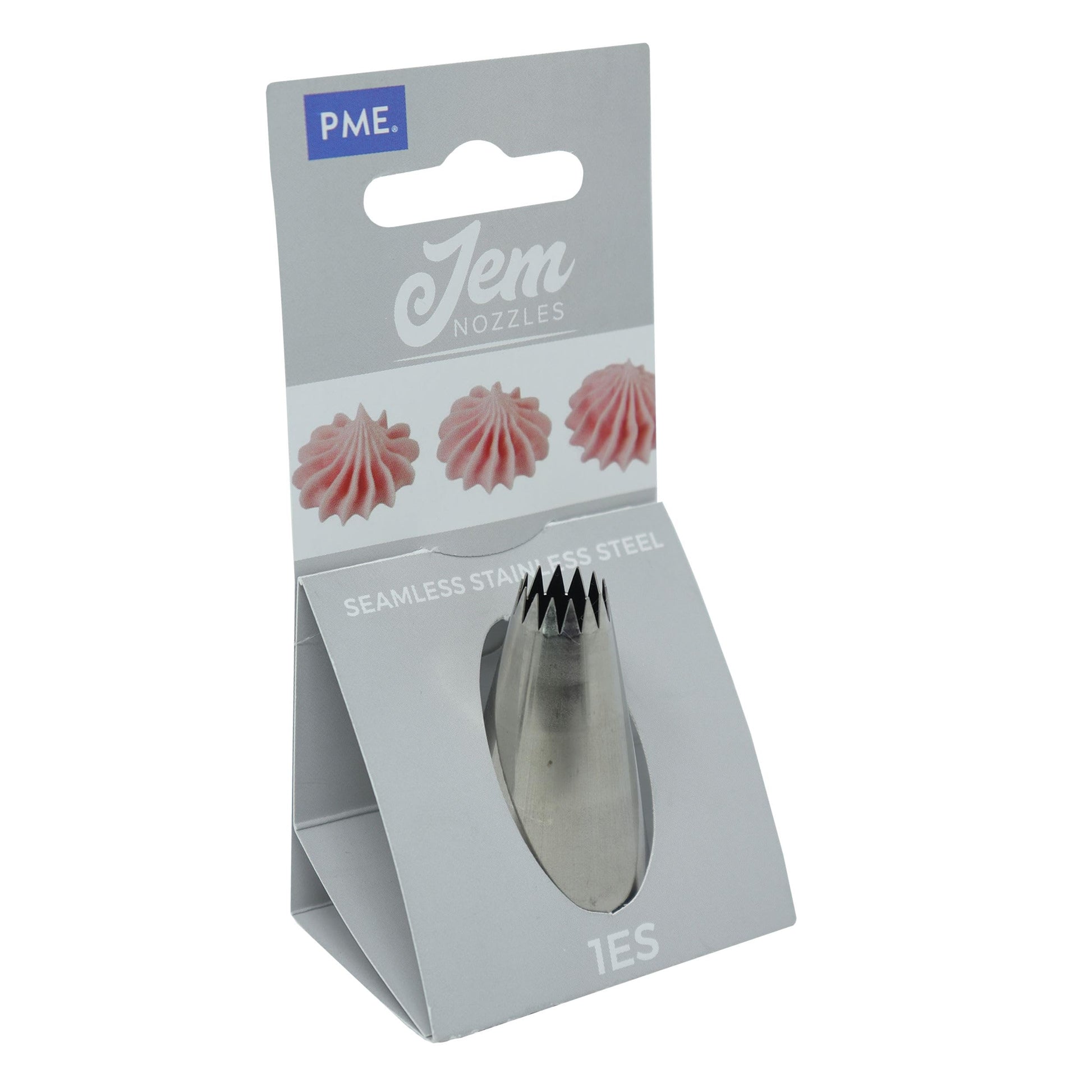 Details: JEM Small Fine Star Savoy Nozzle no. 1ES Ideal for shells, rosettes and decorations with many ridges. Also great to use with cream, mashed potato and choux pastry Dimensions: Tip diameter: 13 mm Base diameter: 31 mm Height: 50 mm No. of Points: 14 All nozzles work with parchment piping bags, standard bags and couplers and are made from high quality seamless stainless steel. Hand wash in warm soapy water is recommended.