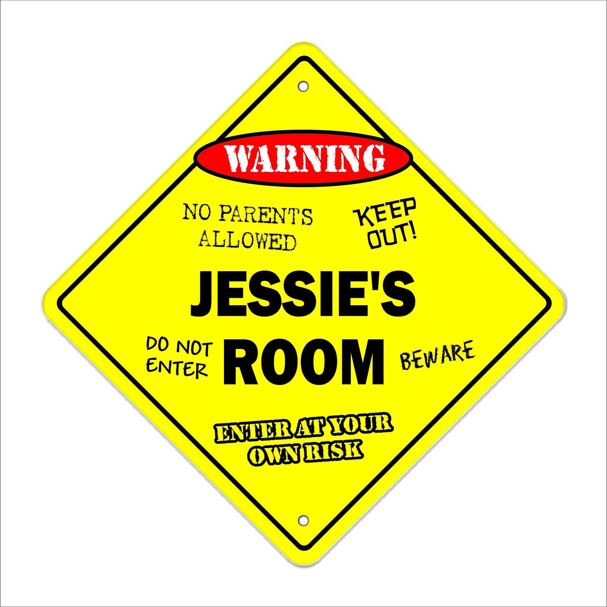 Details: Everybody loves personalized gifts and this is perfect for those kids in your life Made in the USA these signs are sturdy weatherproof plastic 12 tall and 12 wide diamond shaped with rounded corners and 2 cut mounting holes. Made To last Made from a special plastic designed to hold up to a beating, This sign can bend with out breaking and will never chip or crack, the colorful lettering will last a lifetime indoors and up to 4 years in the sun for outdoor use. Safe for A Childs Room Our signs have rounded edges and our made of a very strong but lightweight plastic so you can hang it in your child's room without the worry of it falling and hurting your child or cutting them with sharp edges. Product Details: Jessie's Room -Cut Mounting Holes Indoor and Outdoor Use Rust and Fade Resistant One-Sided Scratch Resistant treated Ink Dimension: 12 Tall x 12 Wide Made in the Durable Plastic Click Add to Cart to get your Jessie's Room sign today and enjoy a good laugh each time you pass by!