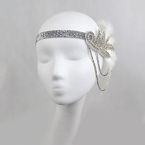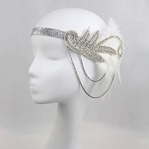 JISEN 1920s Flapper Vintage Peacock Feather Gatsby Beaded Tassel Headpiece