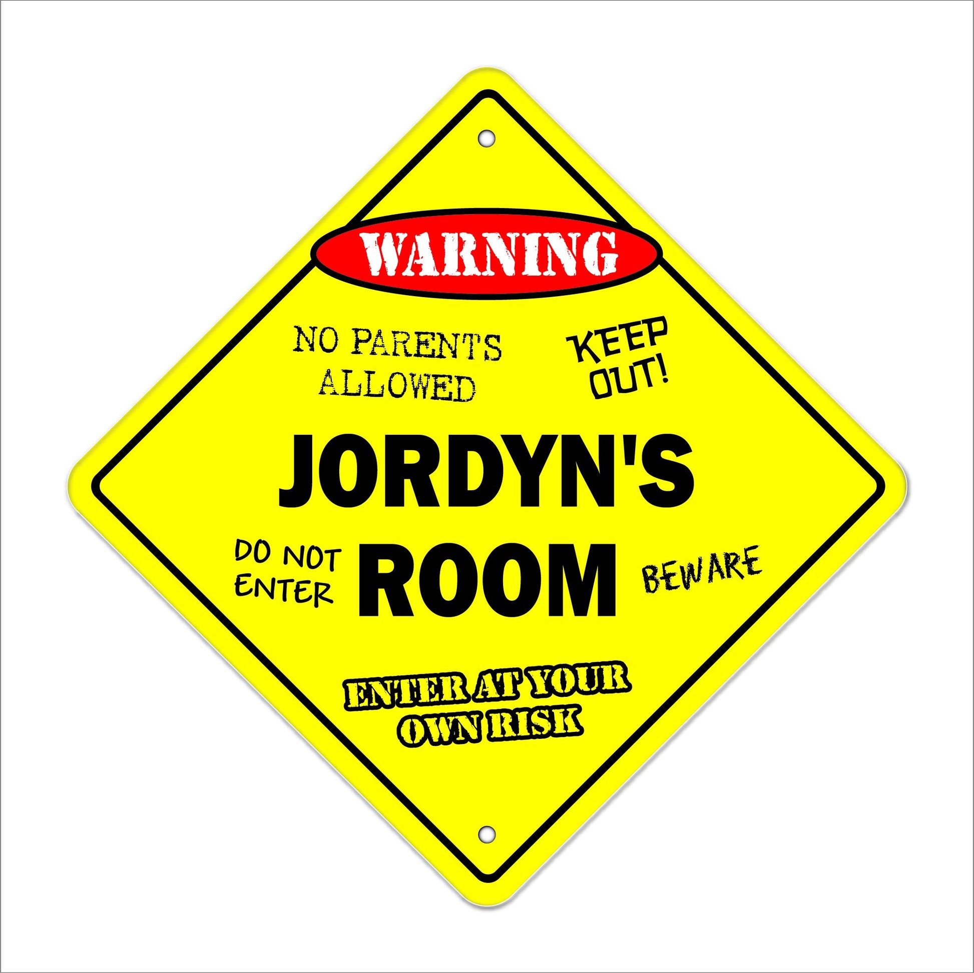 Details: Everybody loves personalized gifts and this is perfect for those kids in your life Made in the USA these signs are sturdy weatherproof plastic 12 tall and 12 wide diamond shaped with rounded corners and 2 cut mounting holes. Made Tolast Made from a special plastic designed to hold up to a beating, This sign can bend with out breaking and will never chip or crack, the colorful lettering will last a lifetime indoors and up to 4 years in the sun for outdoor use. Safe for A Childs Room Our signs have rounded edges and our made of a very strong but lightweight plastic so you can hang it in your child's room without the worry of it falling and hurting your child or cutting them with sharp edges. Product Details: Jordyn's Room SignPre-Cut Mounting Holes Indoor and Outdoor Use Rust and Fade Resistant One-Sided Scratch Resistant treated Ink Dimension: 12 Tall x 12 Wide Made in the USA Outdoor Durable Plastic Click Add to Cart to get your Jordyn's Room sign today and enjoy a good laugh each time you pass by!