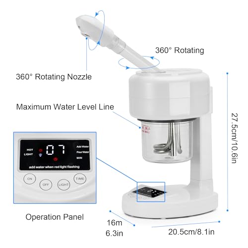 - ??¡¼360¡Æ Rotating Nozzle and Extendable Arm¡½You can adjust the length of arm and the angle of sprayer according to your needs, you just need to stay there in the most relaxing and comfortable way to enjoy the perfect facial spa for best performance,Keep your face at least 7.9 inches from the nozzle to avoid burns.