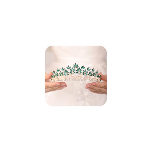 JWICOS Gold Crystal Pearl Tiara Crown for Women Princess Rhinestone Crown Headband for Girls Bridal Wedding Hair Accessories for Brides and Bridesmaid