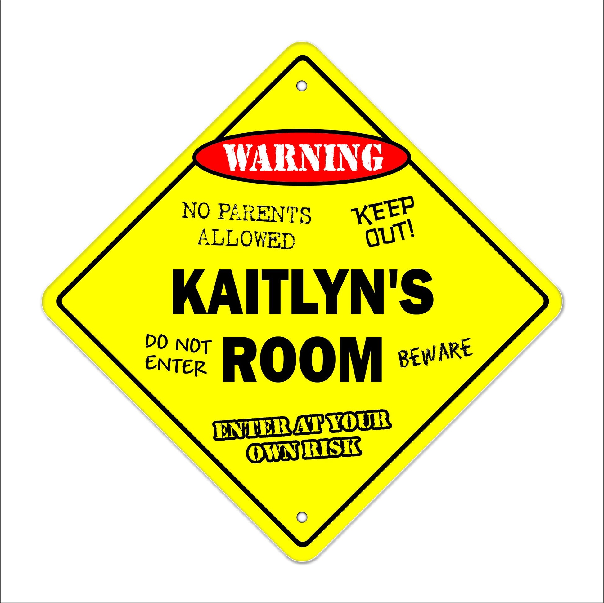 Details: Everybody loves personalized gifts and this is perfect for those kids in your life Made in the USA these signs are sturdy weatherproof plastic 12 tall and 12 wide diamond shaped with rounded corners and 2 cut mounting holes. Made To last Made from a special plastic designed to hold up to a beating, This sign can bend with out breaking and will never chip or crack, the colorful lettering will last a lifetime indoors and up to 4 years in the sun for outdoor use. Safe for A Childs Room Our signs have rounded edges and our made of a very strong but lightweight plastic so you can hang it in your child's room without the worry of it falling and hurting your child or cutting them with sharp edges. Product Details: Kaitlyn's Room SignPre-Cut Mounting Holes Indoor and Outdoor Use Rust and Fade Resistant One - Sided Scratch Resistant treated Ink Dimension: 12 Tall x 12 Wide Made in the USA Outdoor Durable Plastic Click Add to Cart to get your Kaitlyn's Room sign today and enjoy a good laugh each time you pass by!