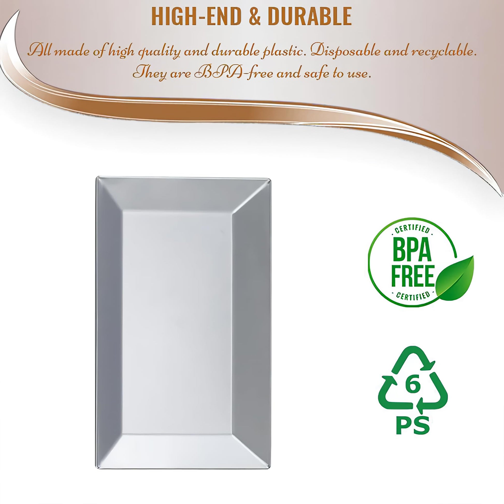 - STUNNING SILVER RECTANGULAR DESIGN: Make a bold and elegant statement at your next event with these silver rectangular colored plastic dessert plates, perfect for showcasing your delicious treats in style.