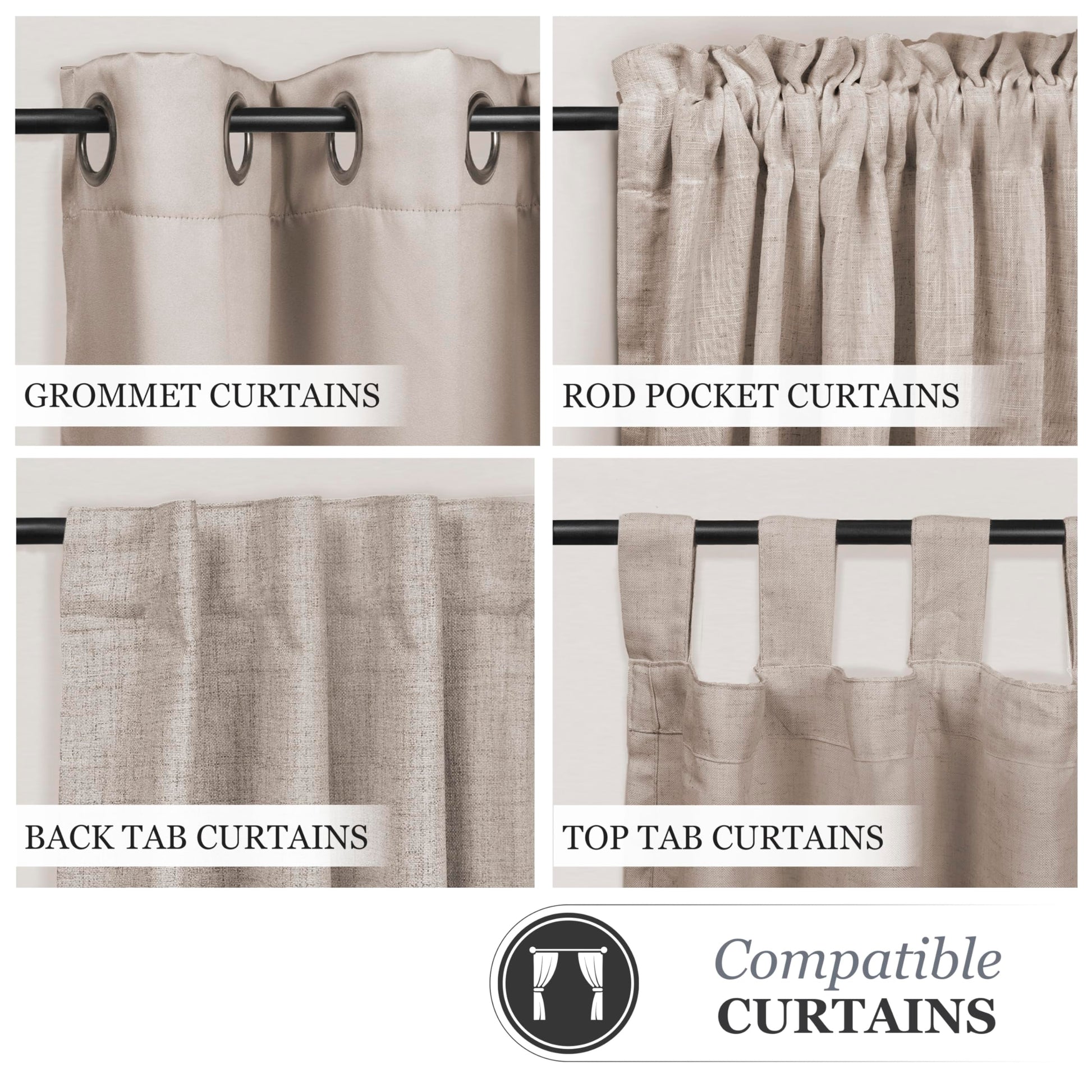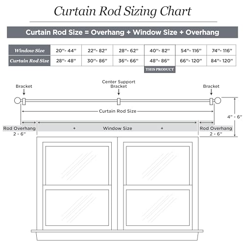 - ADJUSTABLE CURTAIN ROD LENGTH: This window curtain rod spans from 48 inches to an impressive 86 inches, accommodating various window sizes