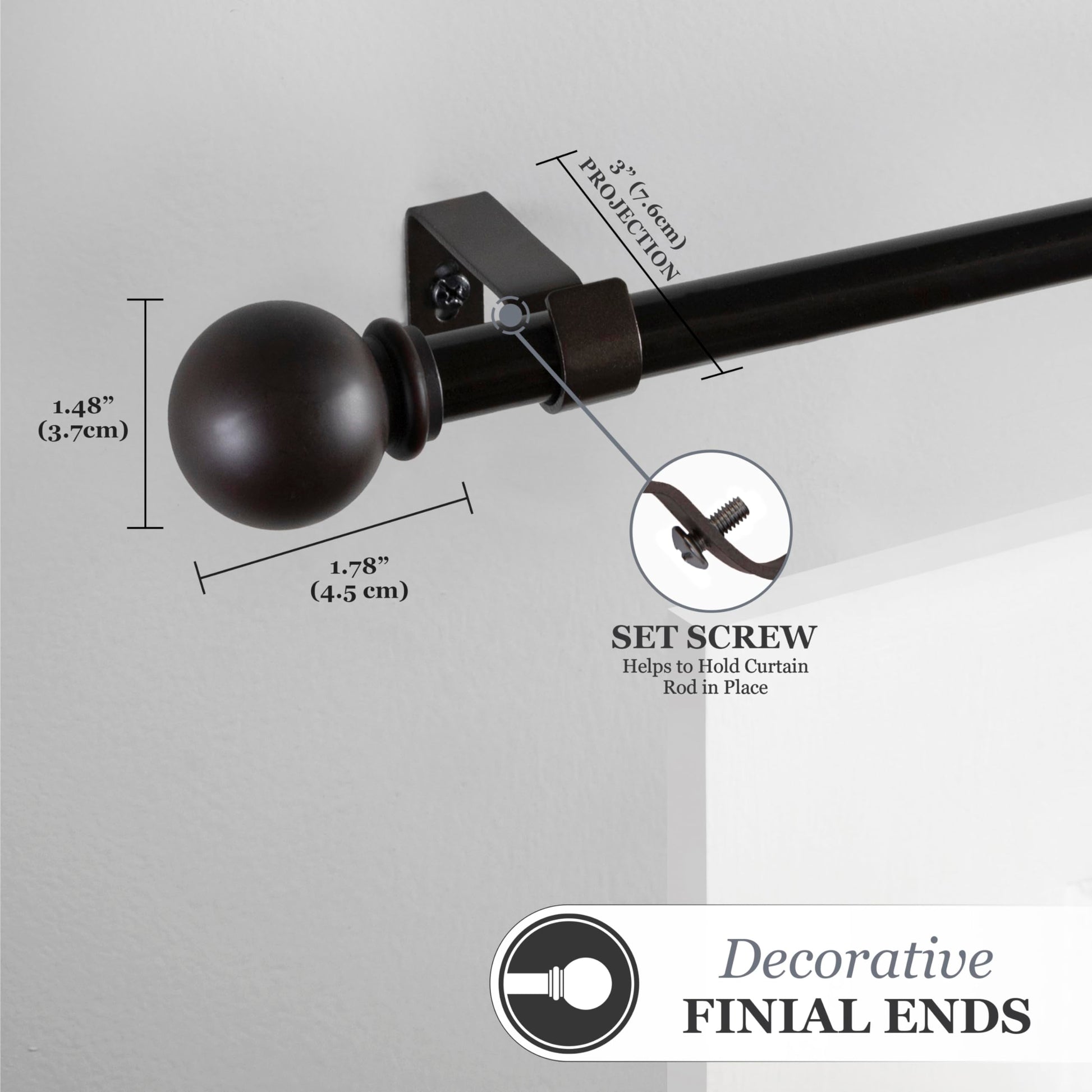Kenney Chelsea Ball End Window Curtain Rod, Adjustable 48 to 86 Inch Extendable Rod Set, Weathered Brown