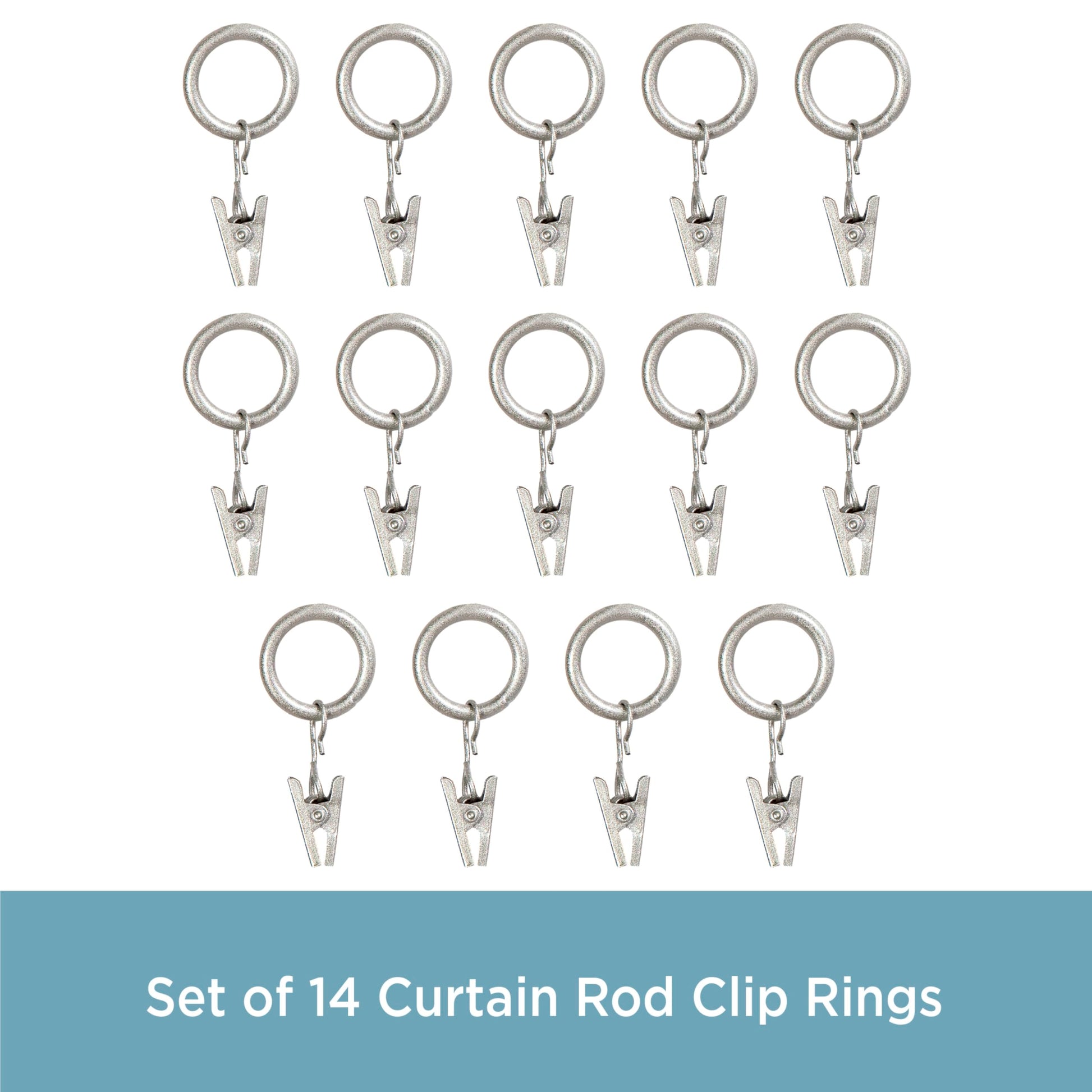 Details: Complement your window treatments with a set of Kenney Clip Rings for 1/2" Diameter Curtain Rods. Easy to use, clip rings onto curtain and slide rings onto curtain rod. These Kenney Clip Rings in pewter finish are suitable for use with 1/2” diameter curtain rods. Set includes 14 clip rings.