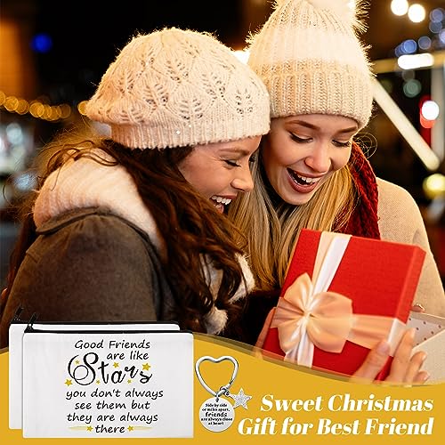 Kenning 10 Pieces Friendship Gifts for Women 5 Pcs Funny Friend Makeup Bag 5 Pcs Good Friends Are Like Stars Friendship Keychain Cute Star Keychain Birthday Presents Graduation Gift for Women BFF Teen