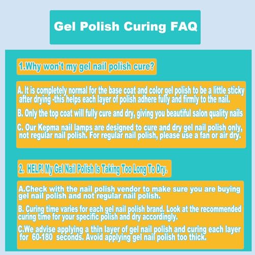 - 5.¡¼Warranty¡½100% customer satisfaction is our pursuit, we can provide 12 months warranty.Warm Tips:Please notice the lamp size before placing an order . It is normal for gel nail polish to feel sticky after curing.DO NOT WIPE. It is recommended to apply as thin a coat as possible when applying gel nail polish. The curing time will be shorter.
