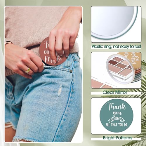 Kigley 50 Pcs Inspirational Compact Mirrors Bulk Employee Appreciation Gifts Round Pocket Mirror for Women Portable Makeup Mini Mirror for Coworker Vet Tech Week Nurse Medical Assistant Christmas
