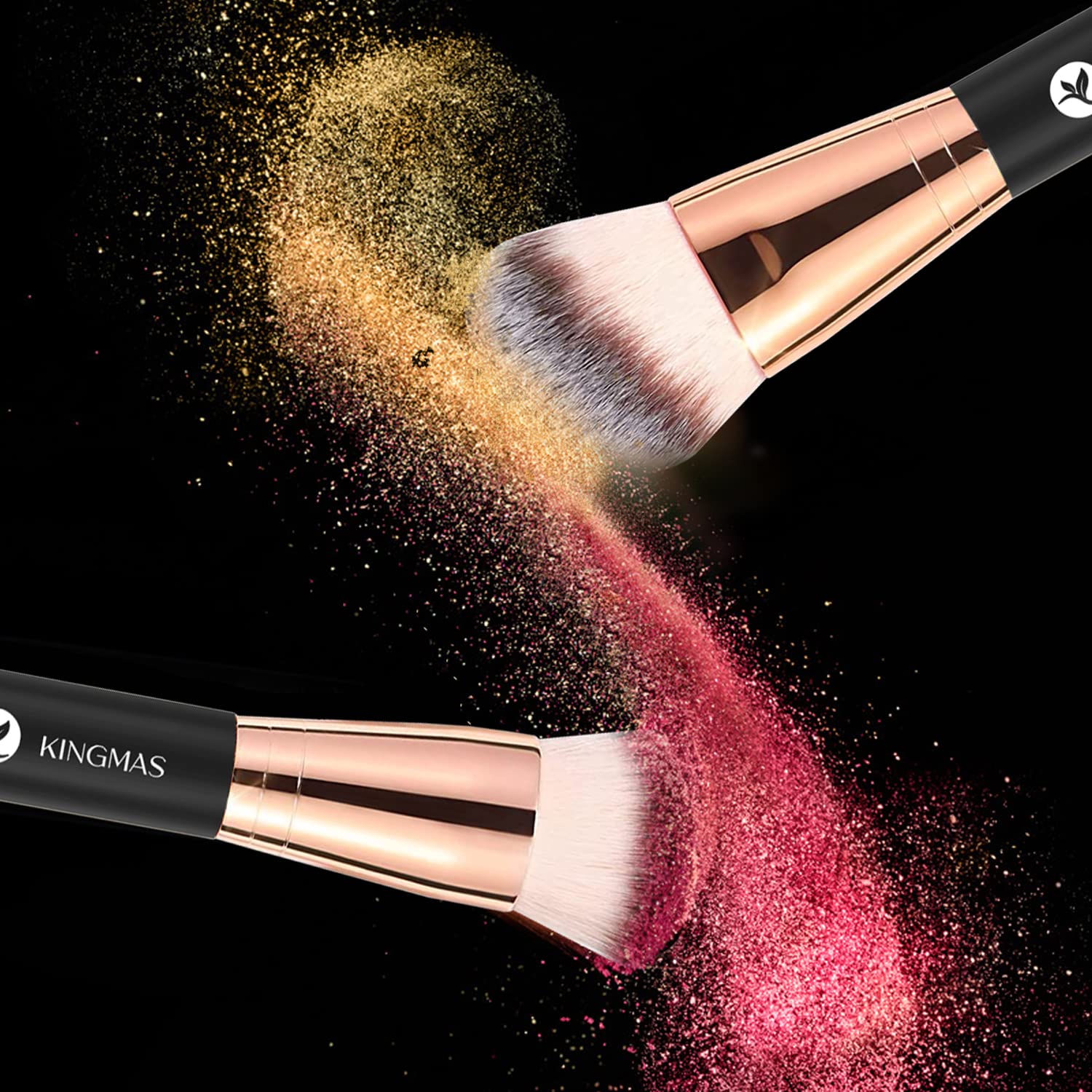 KINGMAS Foundation Makeup Brush, Premium Kabuki Brush, Double-Ended Contour Brush (Flat/Angled Round Top) for Blending Liquid Powder Concealer Cream Blush Makeup Brush